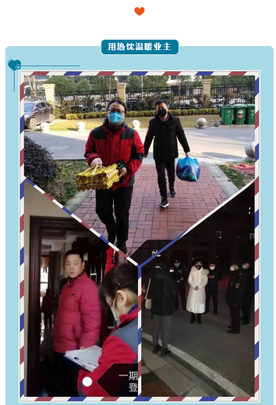 按照公司党委的统一部署,琥珀物业积极联合街道和社区建立群防群治工作机制,有序开展消毒防御、卫生防疫宣传及疫情报备、人员车辆出入管控等各项工作。根据细心排查,得知某住户家中有湖北返乡人员,琥珀名郡物业主管俞学平第一时间联系上报,主动配合社区工作人员,劝导该返乡人员自行隔离14天。在此期间,俞学平坚持每天了解业主身体情况,提醒测量和记录体温,为业主送菜上门,一遍遍的电话,一句句的问候,一声声的嘱咐,从不厌烦、未曾懈怠,帮助业主顺利度过隔离期。
